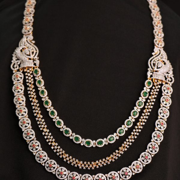 | Content | The CZs used in this necklace are known for their exceptional brilliance and clarity, making them an affordable and popular alternative to natural gemstones. They are carefully crafted to mimic the sparkle and shine of diamonds, adding a touch of glamour and luxury to the necklace. | Bridal, modern, spiritual or popular- When you search for the best in Silver Jewellery- It is we, AKR Jewellers-The one stop for best Silver Jewellery!